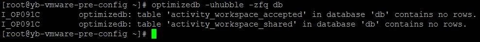 Typically executions will be silent, returning the user to the command prompt when optimization has completed. However, you will be notified of any tables that contain no rows.