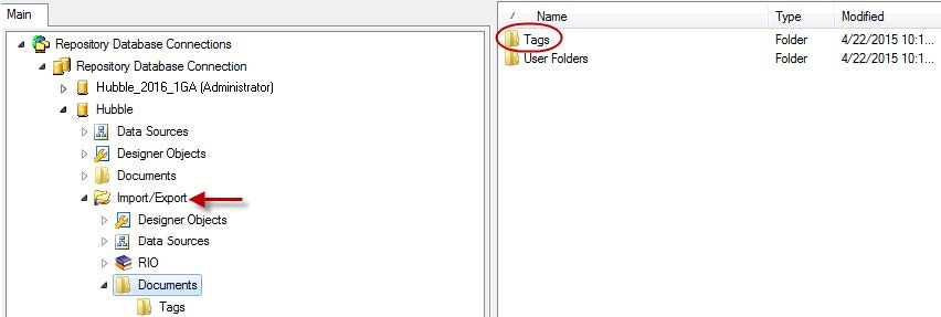 - A blank repository then opens within the Import/Export tree. Use this to paste or drag and drop the repository items that you want to export.