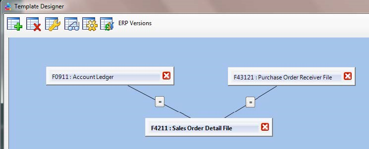 You can minimize the tables used in Template Designer so that only the table names appear. This is necessary when using many tables in a report so you can display all the tables on one screen within Template Designer.