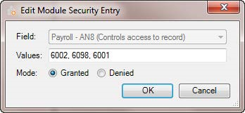 Administrator group. In the new security entry, we denied access to the AN8 field for values 6002, 6078 and 6001.