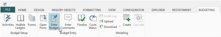 - Click Enter Budget on the Budgeting Menu to enable Enter Budget Mode