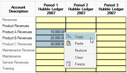 - Copy - Copy the selected cell or range of cells to the clipboard in a plain text format (tab- separated values), suitable for pasting into Microsoft Excel and other applications.