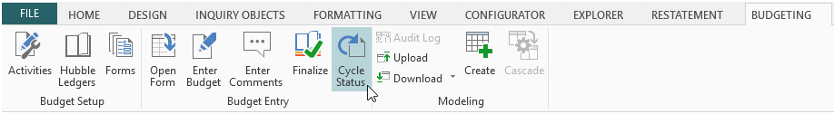 - From within the input form being used in the cycle, click Cycle Status on the Budgeting Menu.