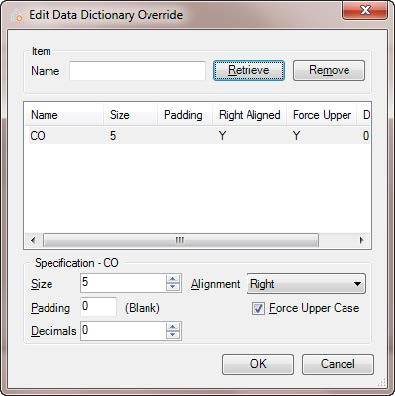 By default, a Data Dictionary Override is set up for column CO so that you do not need to enter in leading zeros if there are less than 5 values in a company number: