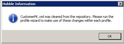The Hubble profile configuration file, CustomerPK.xml, can be imported, exported and cleared.