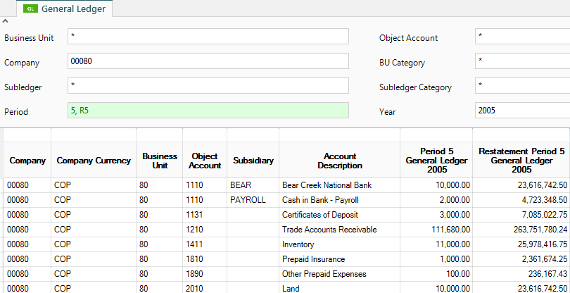 Currency Restatement is performed by simply selecting restatement periods in your inquiry and then running it.