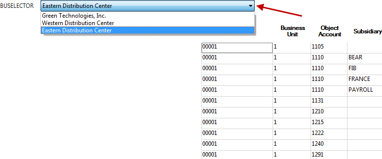 - If the RIO Options for the selector have been set so that users are able to change the current value in the selector, you will see a drop-down menu to the right of the selector where they can choose a current value.