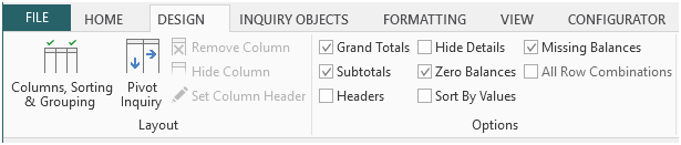 Check the Zero Balances and Missing Balances options from the Design Menu.