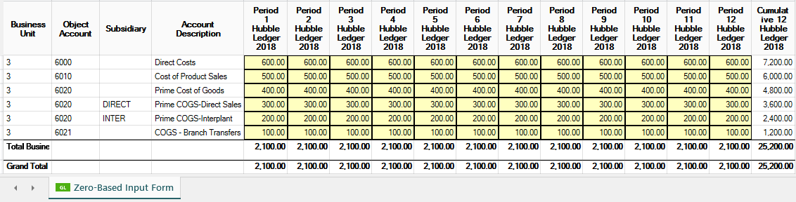 This example will demonstrate the ability to create an Input Form popular when deploying a zero-based budgeting methodology. Zero-based budgeting (ZBB) is a method of budgeting in which all expenses must be justified for each new period. As such, this Input Form will not reference prior actuals or budgets, allowing Contributors to focus only on the Budgeting year and Hubble Ledger.