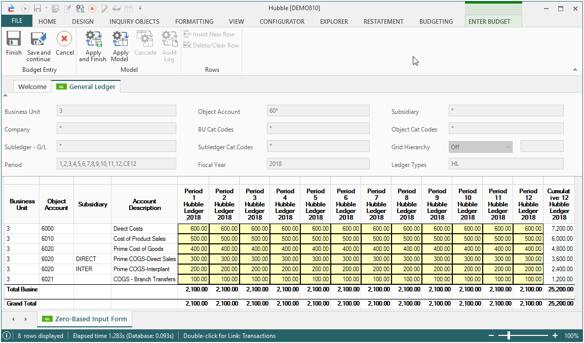 - Open the Zero-Based Input Form, click Enter Budget from the Budgeting menu.
