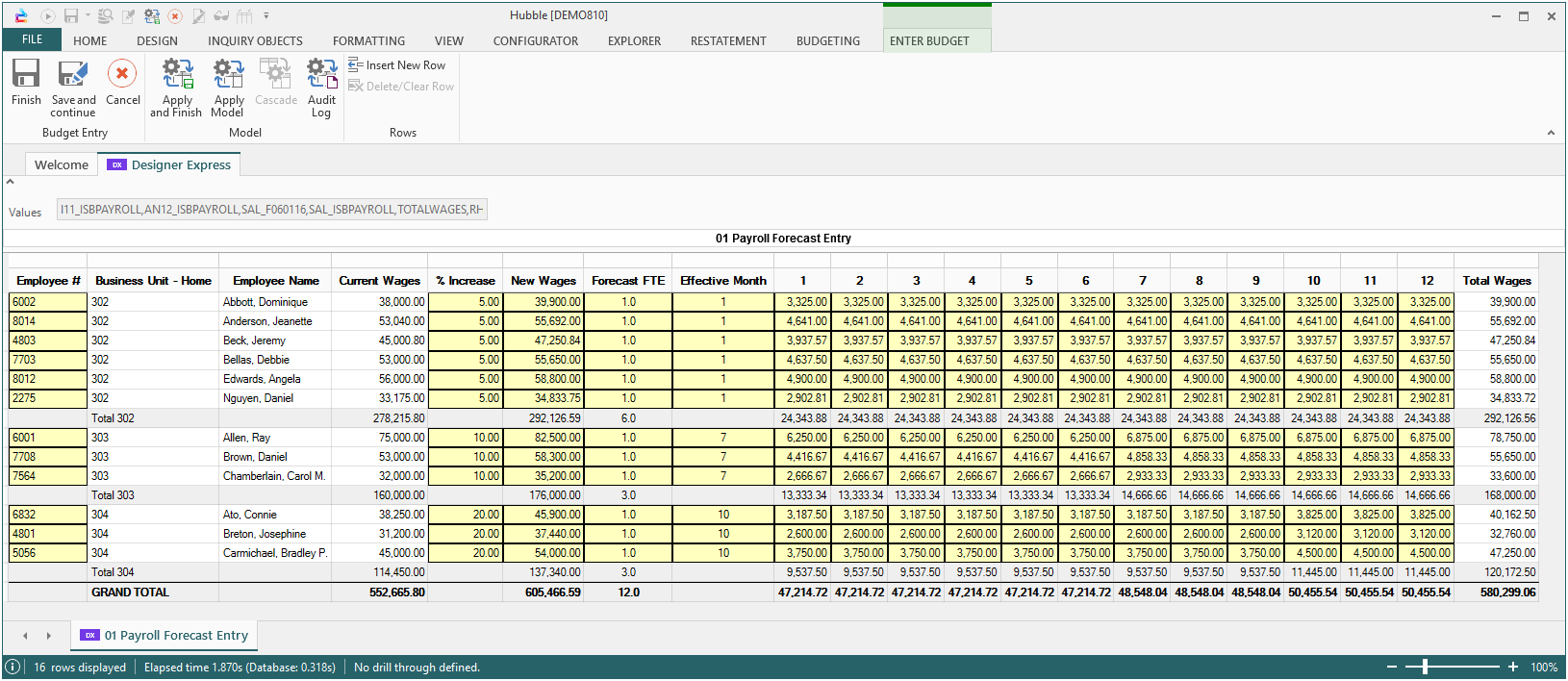 - Enable Enter Budget Mode once again on the 01 Payroll Forecast Entry Form.