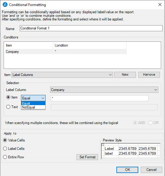 - Click either Apply to apply the format or OK to apply the item and exit the dialog at the same time.