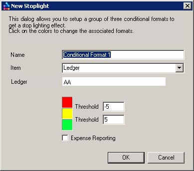 The results of the stoplight formatting with Expense Reporting are shown below: