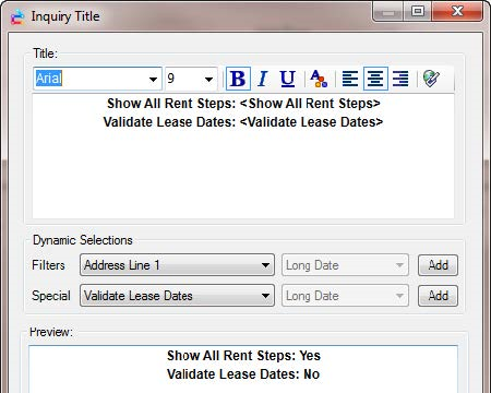 - In the Inquiry Title dialog, put your cursor in the title section at the top of the dialog. You will see a preview of the title, as you are creating it, in the window at the bottom of the dialog.