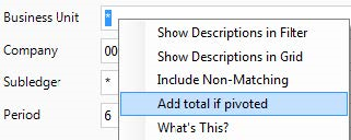 In this example, we have added the Business Unit field to Pivot Inquiry, and are showing the Business Unit code and description: