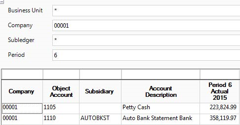 Missing Balances – there has not been any activity in the account. [Missing Balances is a feature which is only available in inquiries based on the JD Edwards Account Balances Table (F0902) or the Asset Account Balances (F1202). When this feature is turned on, Hubble reads the Account Master Table (F0901) for General Ledger or Asset Master (F1201) for Fixed Assets, and returns all available rows according to the filter criteria in the inquiry. The optimal use of the Missing Balances feature is by using filters or a small hierarchy to narrow down the data being returned.]