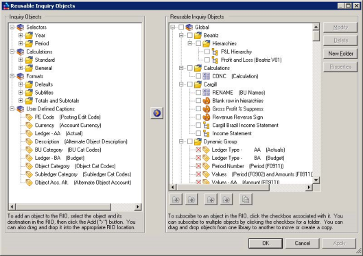 - Access RIO by clicking on Reusable Inquiry Objects from the Inquiry Objects menu. The Reusable Inquiry Objects dialog is displayed.