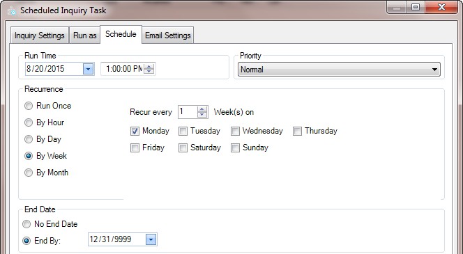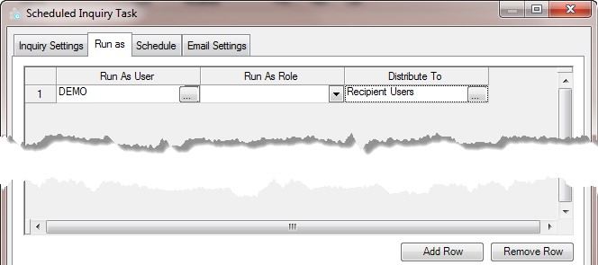 Scheduler runs the inquiry once for each combination of ‘Run As User’ and ‘Run As Role’, honoring the ERP security for the two together.