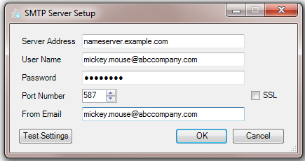 Within the SMTP Server Setup dialog, complete the following information that is specific to your SMTP Server: