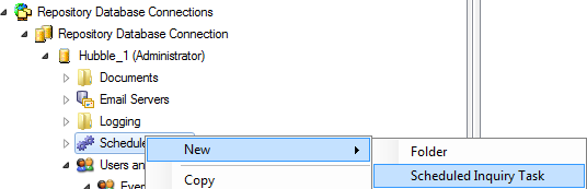 Right-click on Scheduled Tasks, select New, and then choose Scheduled Inquiry Task: