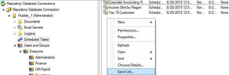 Right-click in the white area of the right panel and select Save List.