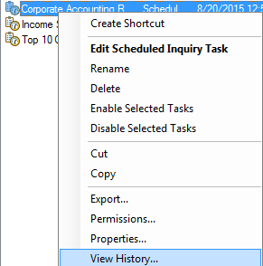 Once the Scheduler user logs back into Scheduler they will be able to View History for their Scheduled Task.