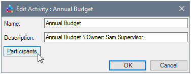The Participants button launches the Activity Participants dialog where you can set up the workflow of the participants.