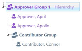 In the example below, the contributor’s submission will be approved once the top-level approver has approved the submission.