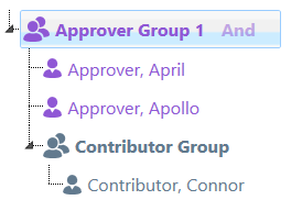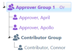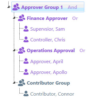 In the example below, the contributor’s submission will be approved once one finance approver and one operations approver has approved the submission.