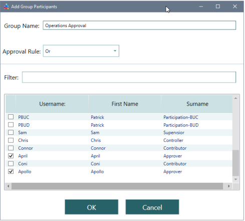 This rule will enforce that all members of this group approve a budgeting submission before the Input Form’s status is approved. In the case that any approver rejects a submission, the overall status is reset so that a contributor can alter the numbers again.