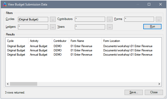 - Click on the Query Budget Data button to display the View Budget Submission Data dialog.