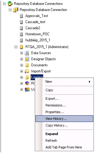 Once Logging is set to capture changes to Budgeting, then when any changes are made to a cycle status they will be tracked. To view the log in Administrator, right-click on Logging and select View History: