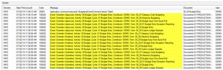 If Budgeting has been turned on in the Log Stream Configuration in Administrator, you can view Budgeting Cycle changes. They are not tracked in the Budget History table because they are not tied to a specific row on a report and are contained in a separate dialog screen.