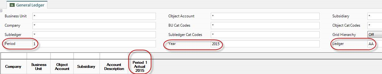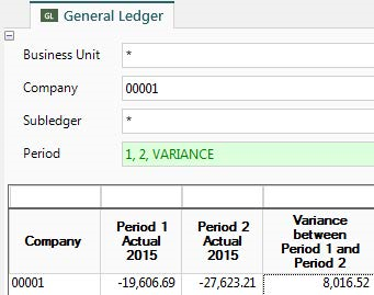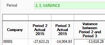 In the same example, to only display Period 1 on the inquiry, remove Period 2 and you will only see 1 value column on the inquiry: