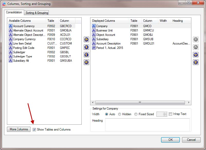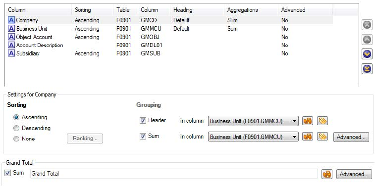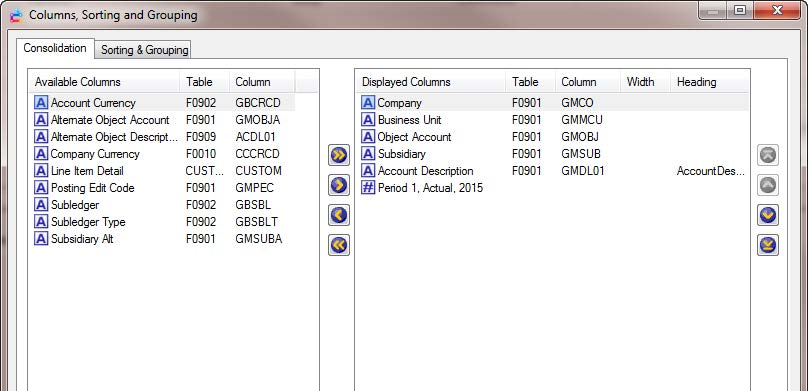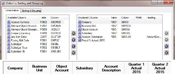 In the Columns, Sorting and Grouping dialog, you designate how columns within the inquiry result set are grouped and organized.