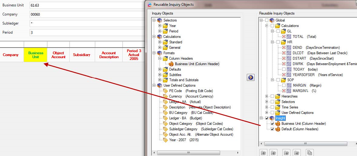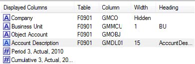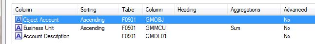 Note: Hiding vs removing columns - Removing a column will completely remove it from the inquiry; a hidden column can still be used to do sorting and base headers and totals on.