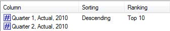 If the first column being sorted by is a value column, you can also set up ranking so data columns are in ranking order either by highest or lowest values. To rank values: