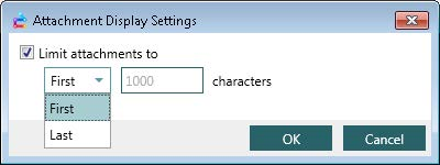 If First is selected, the beginning of attachment text up to the character limit will be displayed. If Last is selected, the end of attachment text up to the character limit will be displayed.