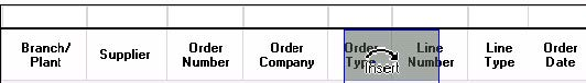 - Interactively, by dragging and dropping columns within the inquiry. You can drag and drop columns by selecting the column near the column header and moving it to another place. You will see the symbol change, depending on where you are trying to drop it: