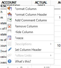 - From within an inquiry, right-click on the column header and select Format Column Header.
