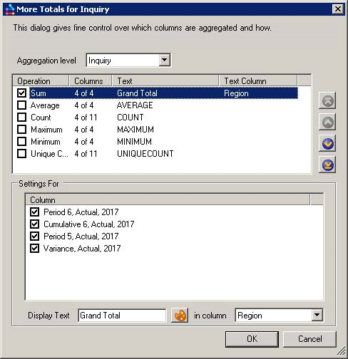 - To see a grand total, mark the checkbox in Grand Total to include it in your inquiry.