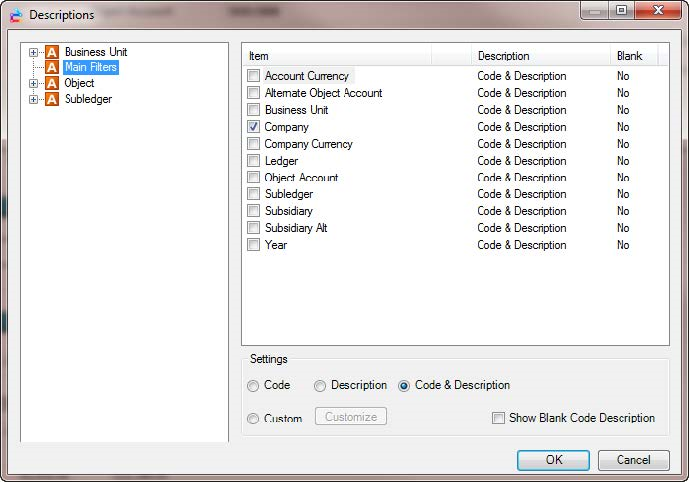 With these options, there is a direct join to the F0901 to retrieve the descriptions, so there are no temporary tables being created. Results can be returned quickly with these options.