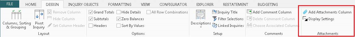 In the Attachments panel of the Design tab, click the Add Attachments Columns option.