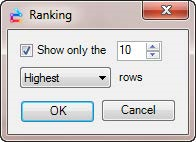 - Click the Ranking button, where you can specify the number of rows to display by entering a value and defining whether or not that should apply to the highest or lowest group of values.