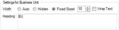 In the example below, we will show the Company column with a header and sum that display in the Business Unit Column.