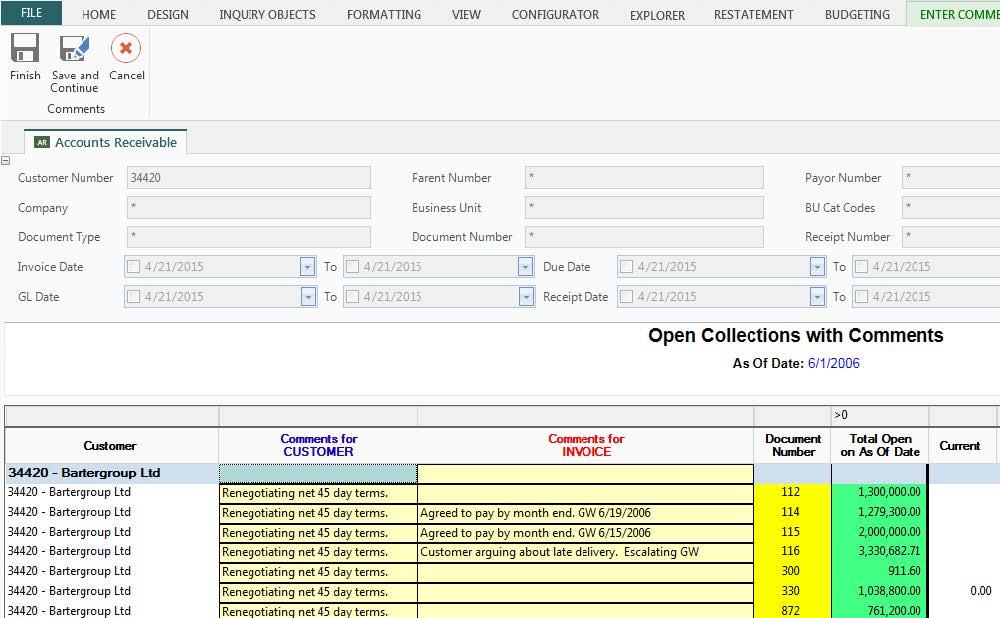 - Comments are saved as part of the inquiry; therefore when adding comments to an inquiry, the user must save the report before the comment can be viewed by other users. If the inquiry is already open by other users, they must close it first and re-open to view the comment.