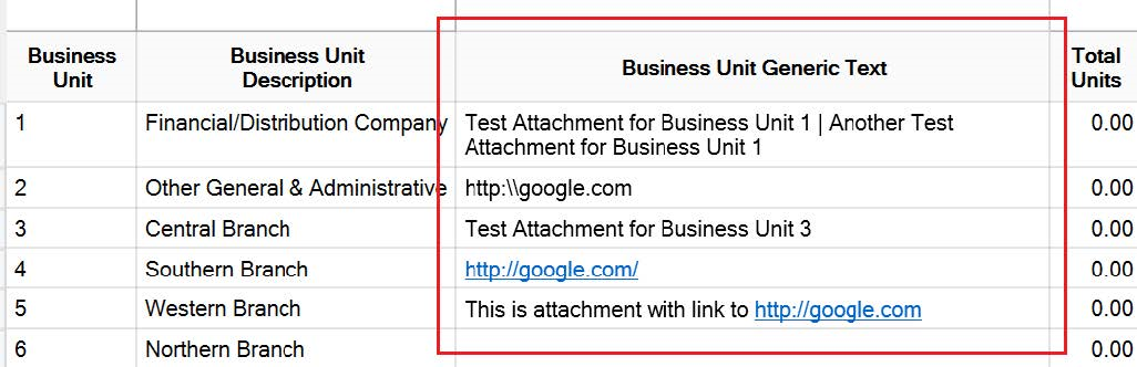 - If there are multiple attachments to be displayed in a row in the attachments column, they are separated in the cell using the “|” symbol.