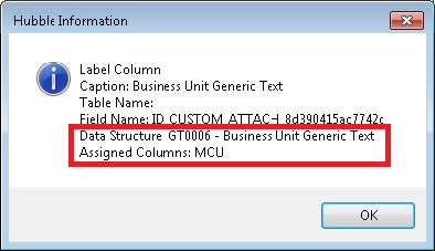 The required key columns and the relevant object name are shown in What’s this window of the column. For example: